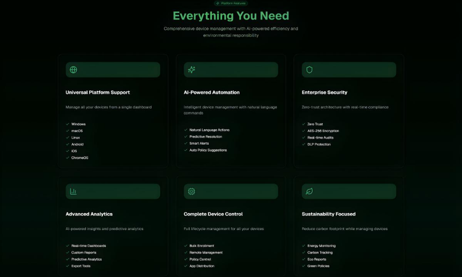self-learning compliance model helps enterprises align automatically with data protection and internal audit frameworks, ensuring that every device remains policy-compliant even when offline.
