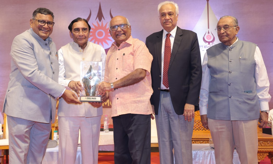 For their outstanding contribution in the fields of science, spirituality, art, sports, industry and social service, renowned personalities from home and abroad such as Shri Rahul Shukla family (USA) and Shri Nishith Mehta (Microsign Products) were awarded the Vasudhaiva Kutumbakam Award. Shri Hirabhai, Shri Kiranbhai Vora (Asopalav) and Shri Pradeep Trivedi were awarded the Gujarat Ratna Award. Shri Bhupatbhai Sukhdiya and Smt. Jagruti Sukhdiya (Shri Radhe Dairy Farm and Foods Ltd.) were awarded the Business Award. Master Miran Bhatt was awarded the Young Star Award. Shri Nitin Mehta from UK, was given the International Animal Rights Activist Award, Shri Jitendra Chauhan, Shri Bipinbhai Chauhan, (Jade Blue) received the Fashion Award. Shri Yogeshbhai Lakhani (Bright Outdoor) was given the Golden Achievement Award, Shri Vishnubhai Pandya, journalist, writer, historian and columnist was awarded the Literature Award. Shri Siddharthbhai Shah was given the Young Entrepreneur of the Year Award. Shri Prakashbhai Sanghvi (Ratnamani Metals and Tubes), the Jain Ratna Award, Shri Chandraprakash Doshi (American Steels Pvt. Ltd.), the Young Achievers Award, Hon. Brahmachari Shri Niranjananandji (Dr. Dhananjay Shastri) was honored with the Dharma Rakshak Award, Smt. Geeta Agarwal with the Change Maker Award, Yogacharya Shri Rajesh Barot with the Health and Fitness Award, and Shri Devangbhai’s team of Expertz Holidays was honored with the Event Management Award.