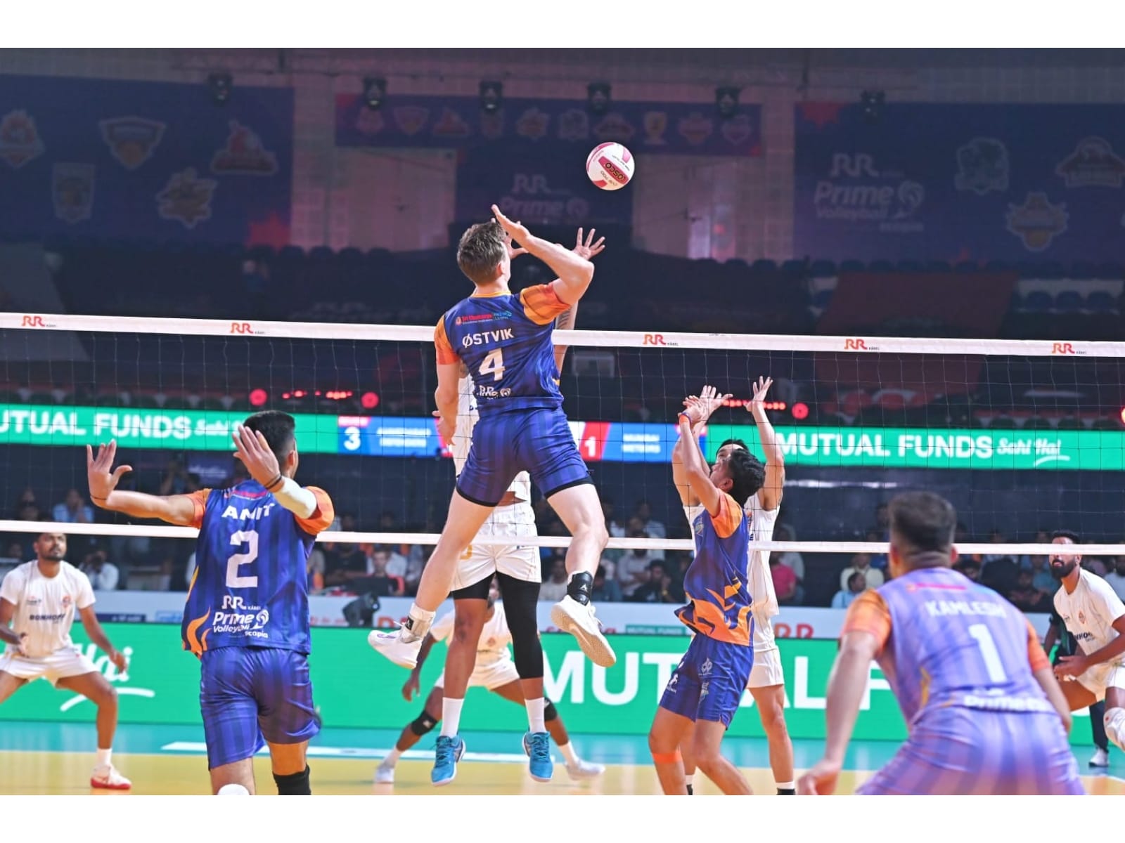 Nandha started strong for Ahmedabad, while Muthusamy Appavu set up attacks from the middle to utilise Abhinav’s strengths. The Meteors targeted small gaps in Zone 2 as Mathias Loftesnes managed to get a super serve. Petter Ostvik blocked Angamuthu twice, but service pressure from Dhruvil Shah kept the game levelled. A risky super serve paid dividends for the Meteors and got them a set ahead.